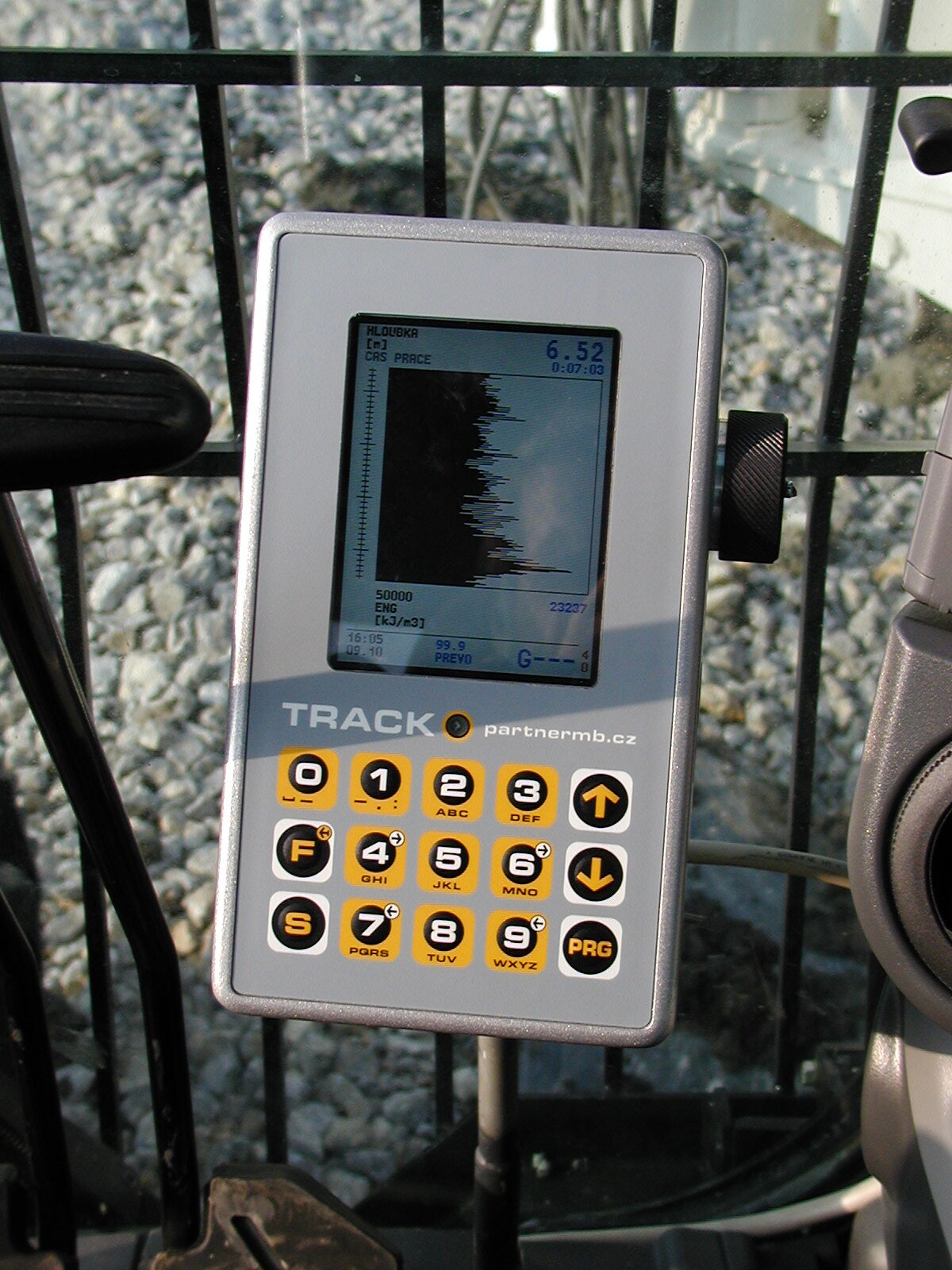 Data v zařízení Track CFA jsou zobrazena v podobě číselné, v podobě bargrafů a grafů hloubka x parametr. Vytahování šneku během betonáže (není-li použita automatika) se provádí ručně na základě sledování bargrafu tlaku betonu a bargrafů průtok betonu x nárůst objemu pod vrtákem.